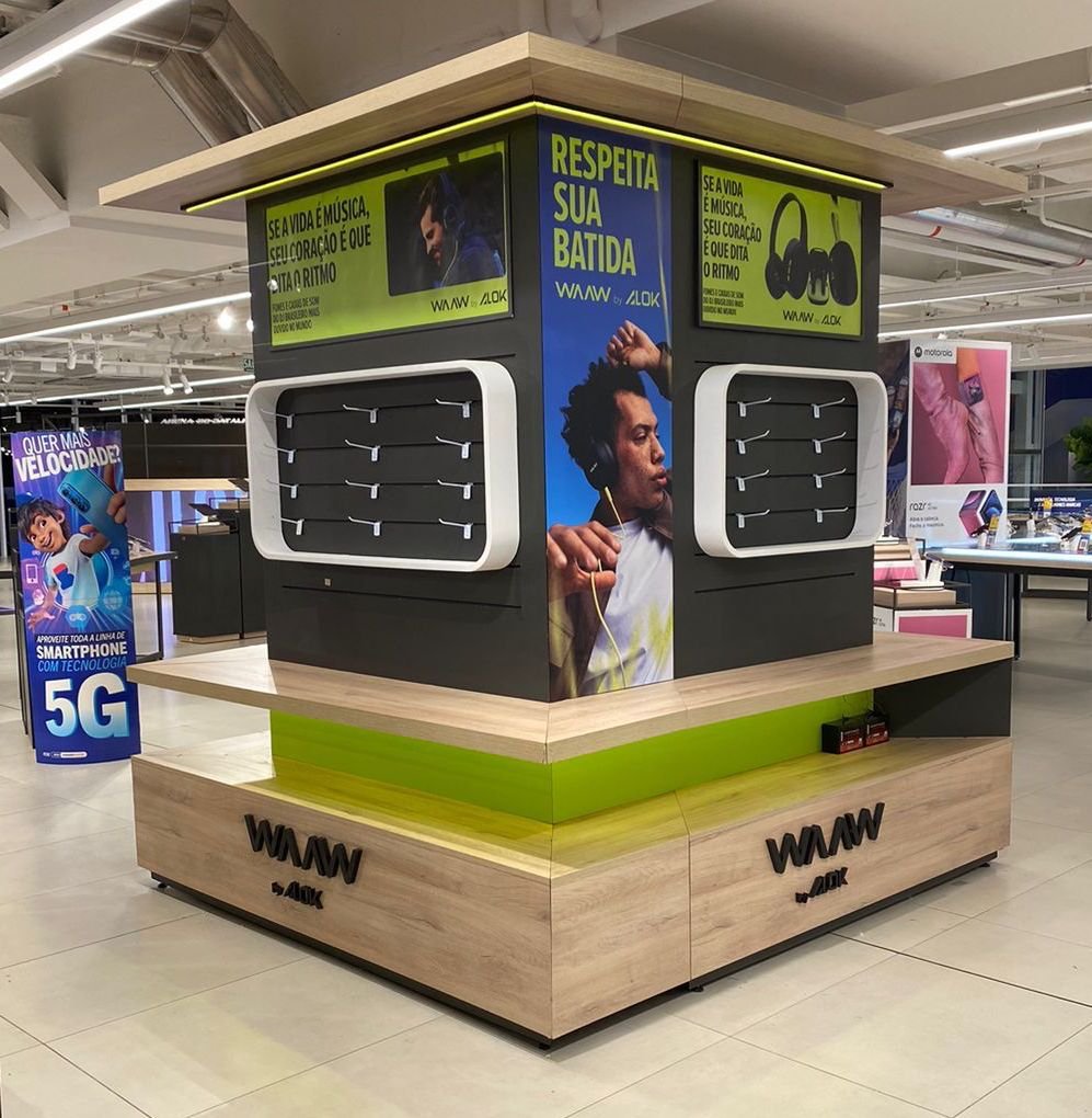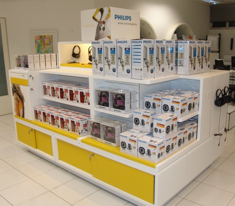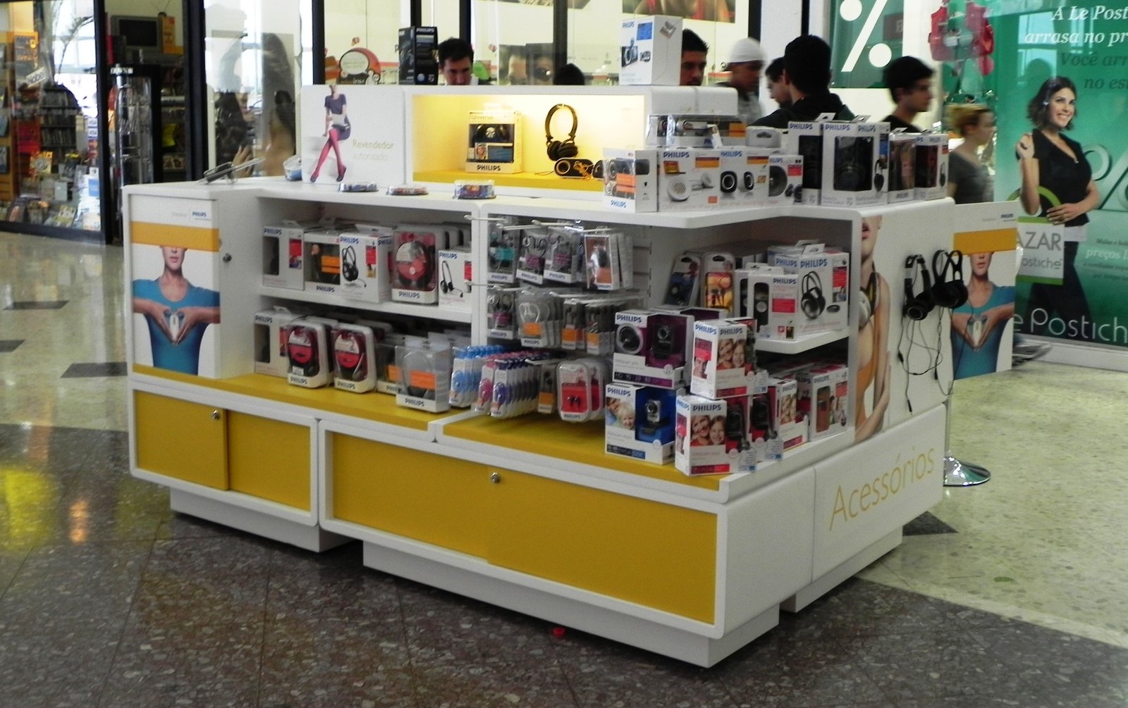 2. Ilhas Centrais: Ótimas para produtos de consumo rápido. O display deve permitir visão 360º.