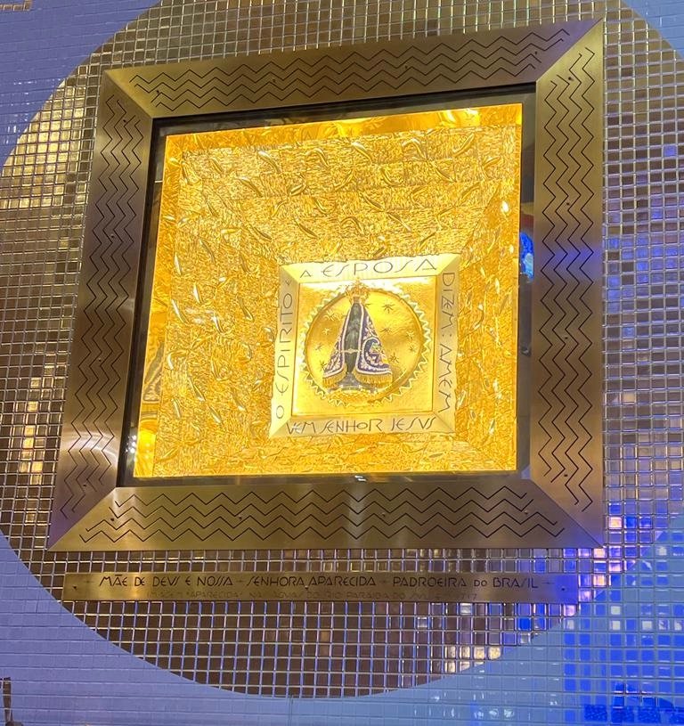 A Studio Vero teve a honra de desenvolver um expositor exclusivo para a imagem de Nossa Senhora Aparecida, combinando devoção, tecnologia e design em um projeto único.
