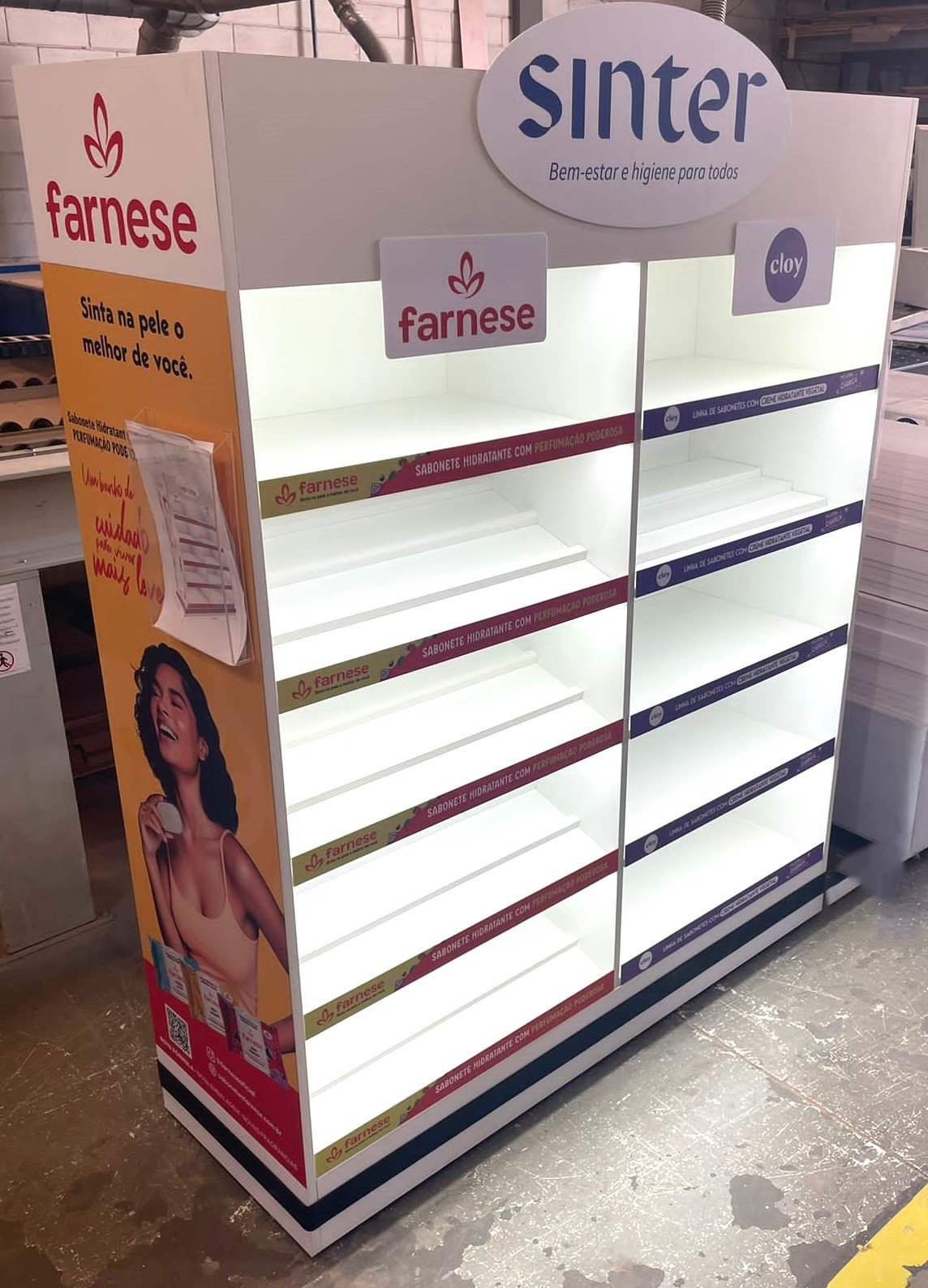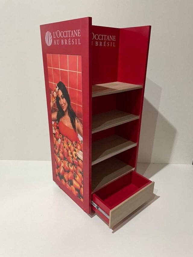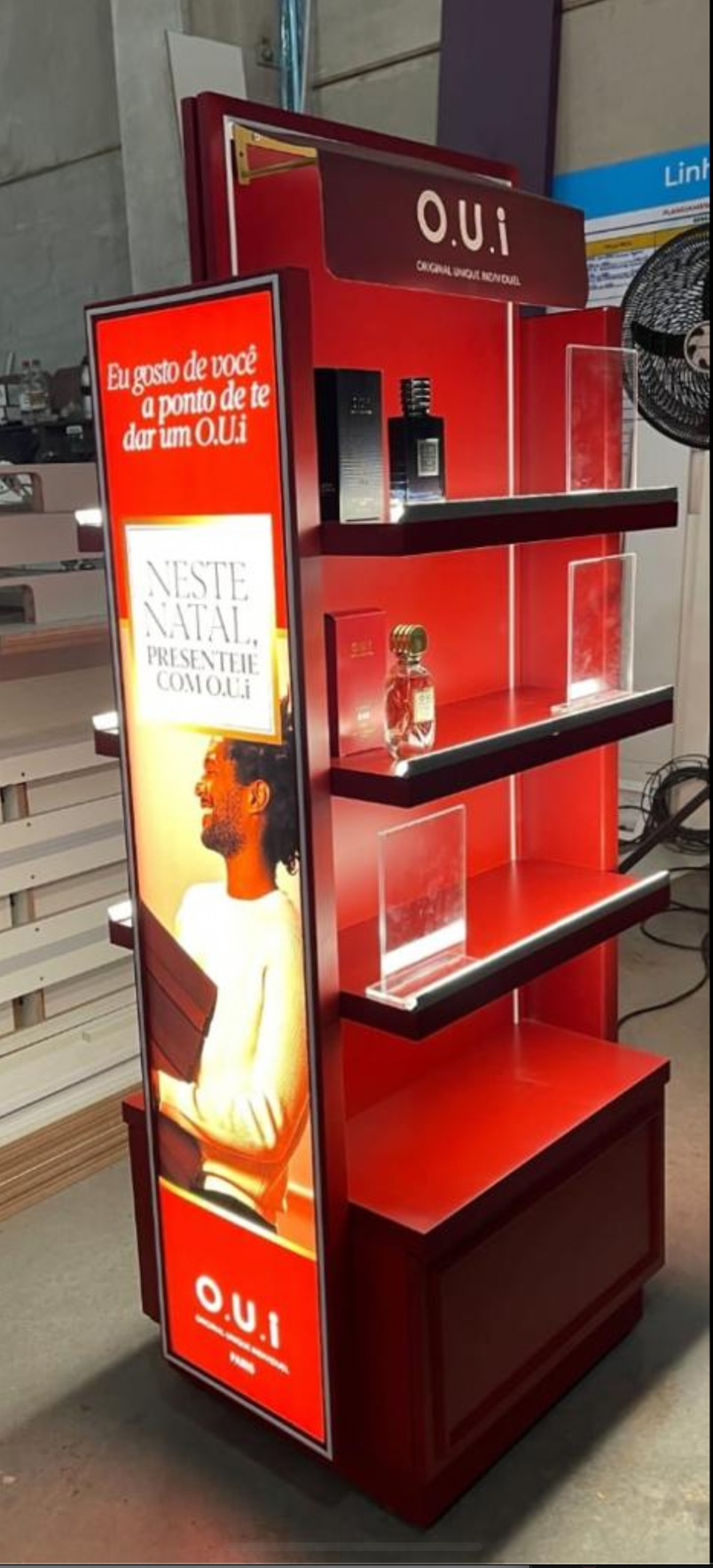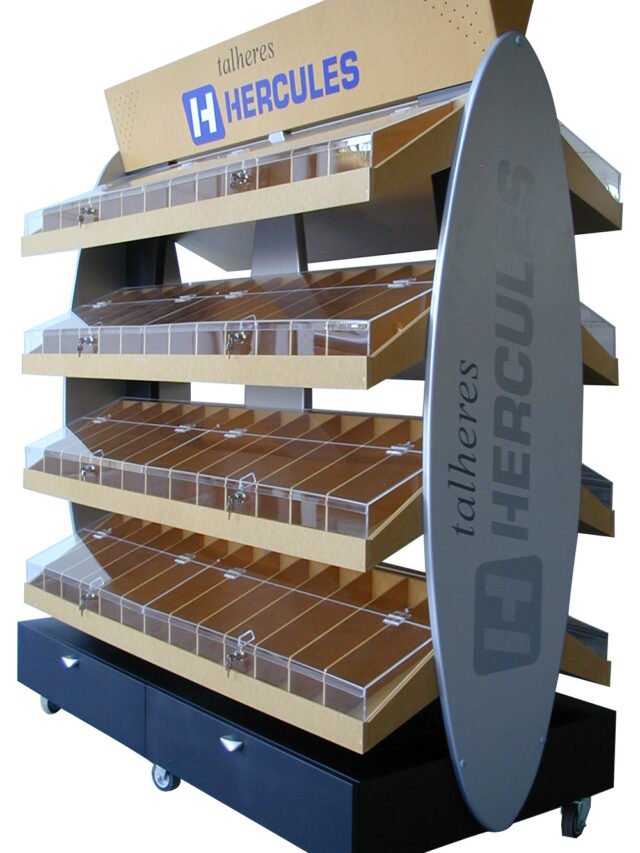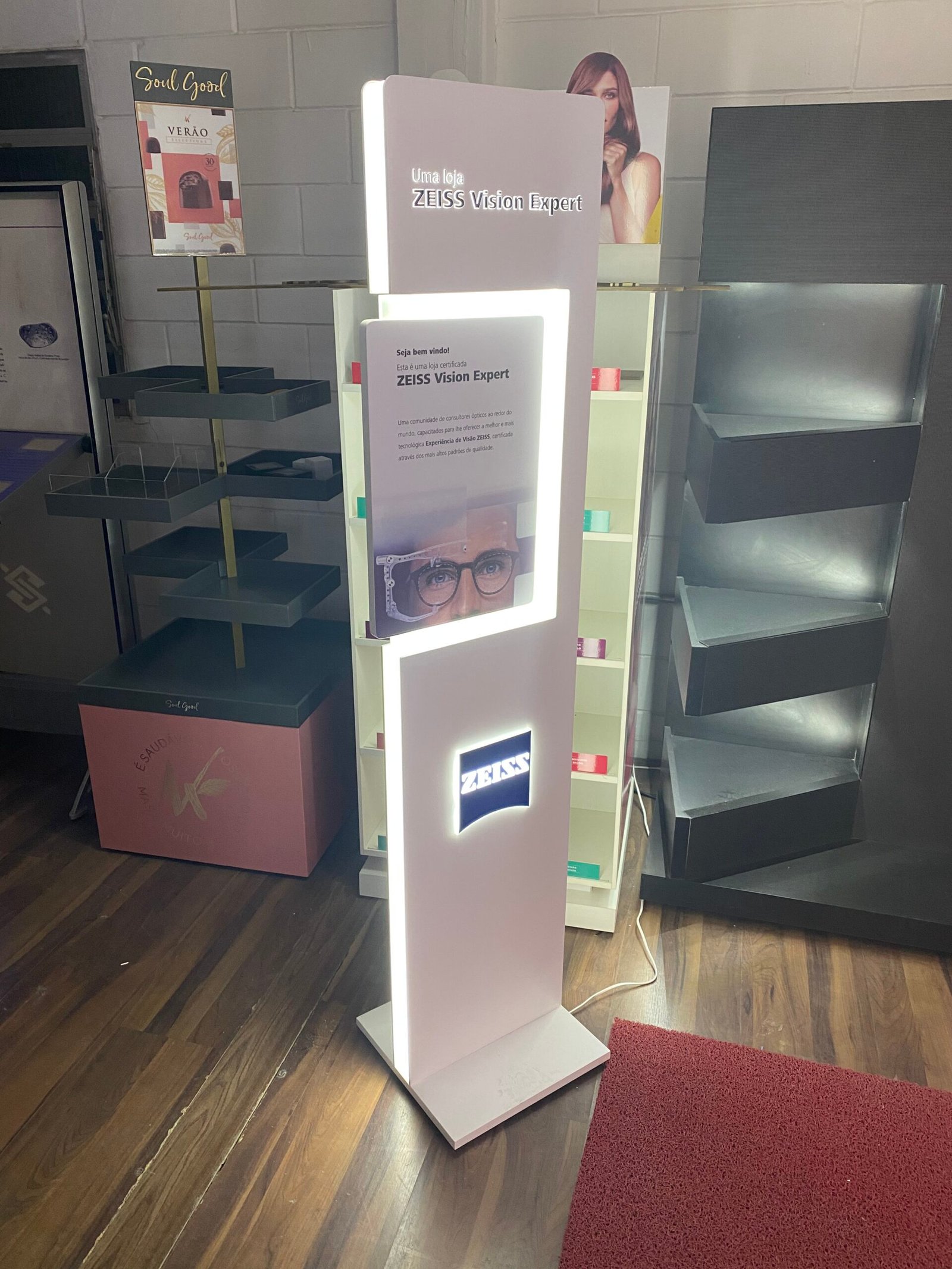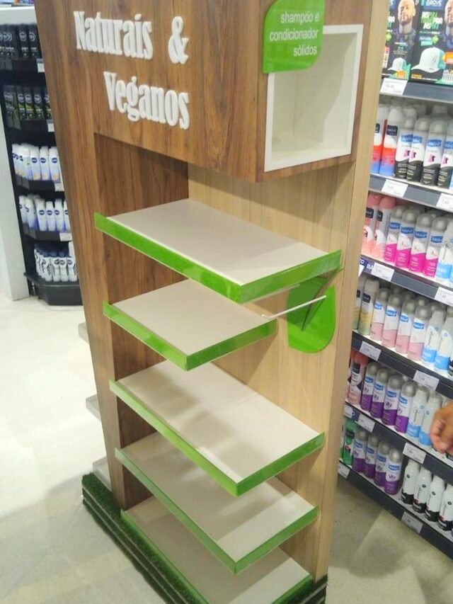 Os displays de chão do Studio Vero são ideais para exposição de produtos em áreas de grande circulação.