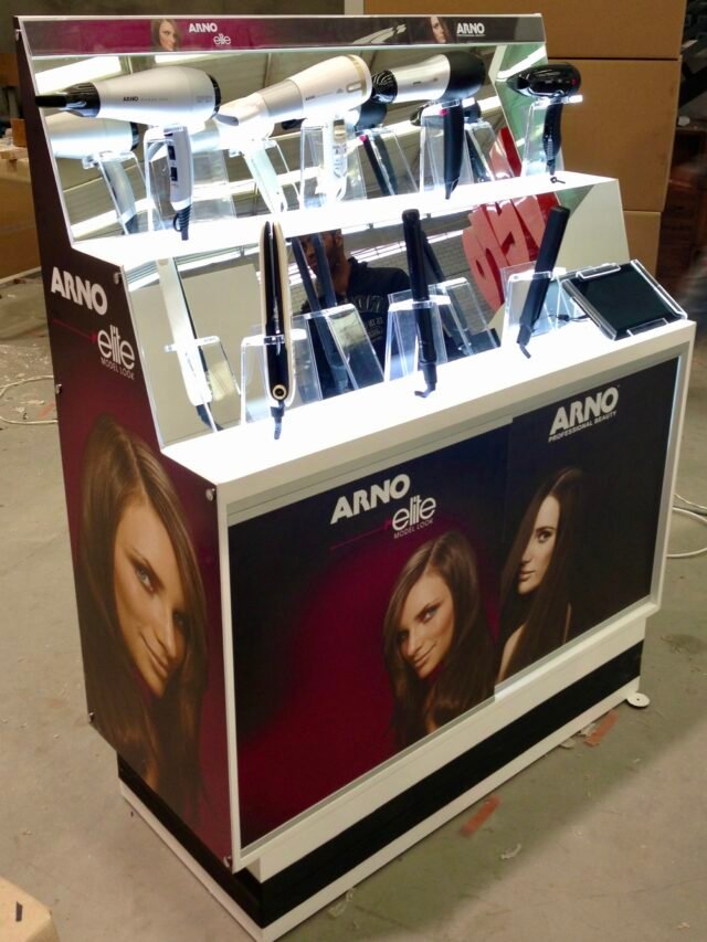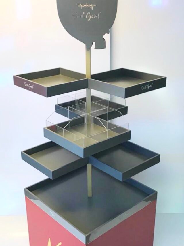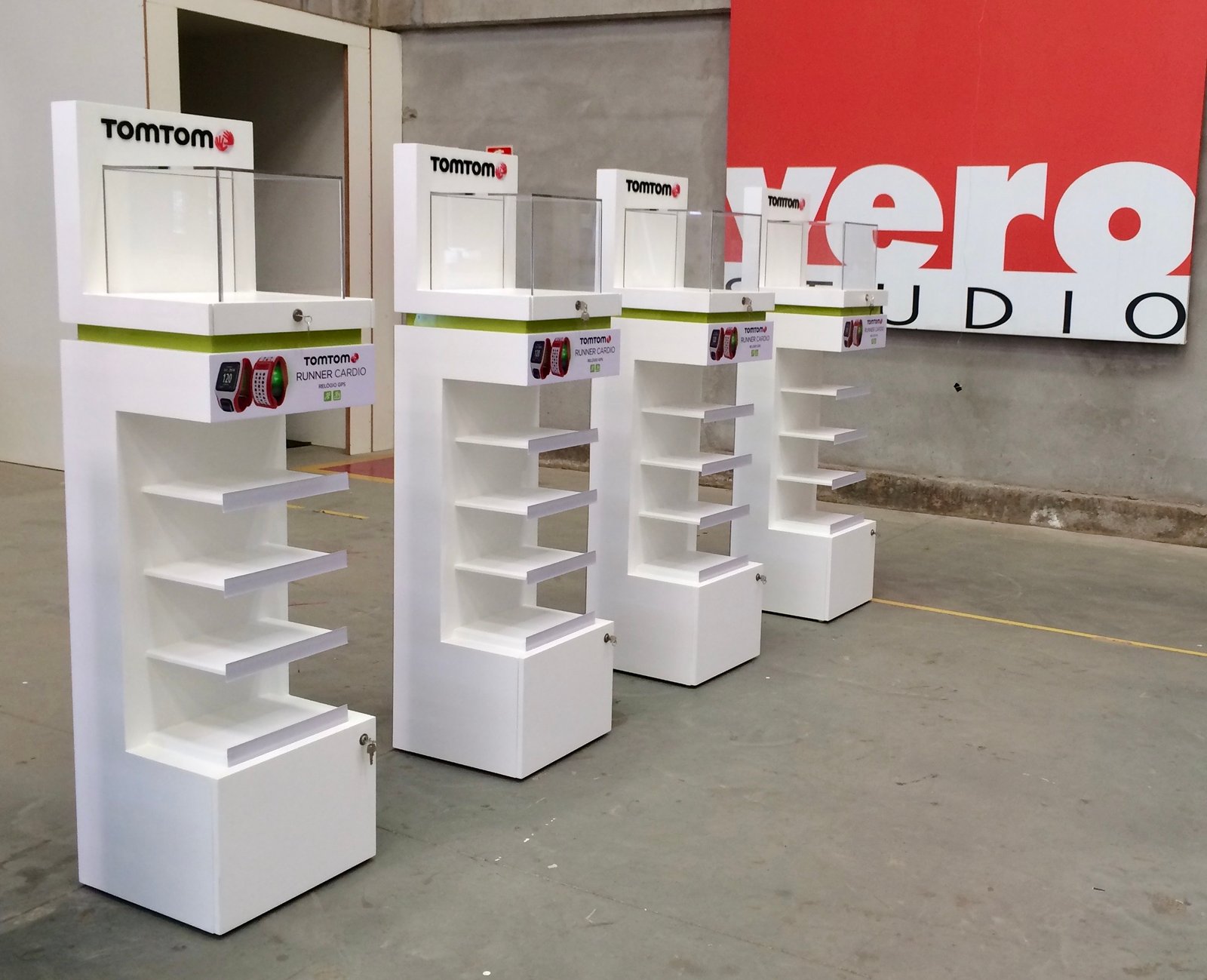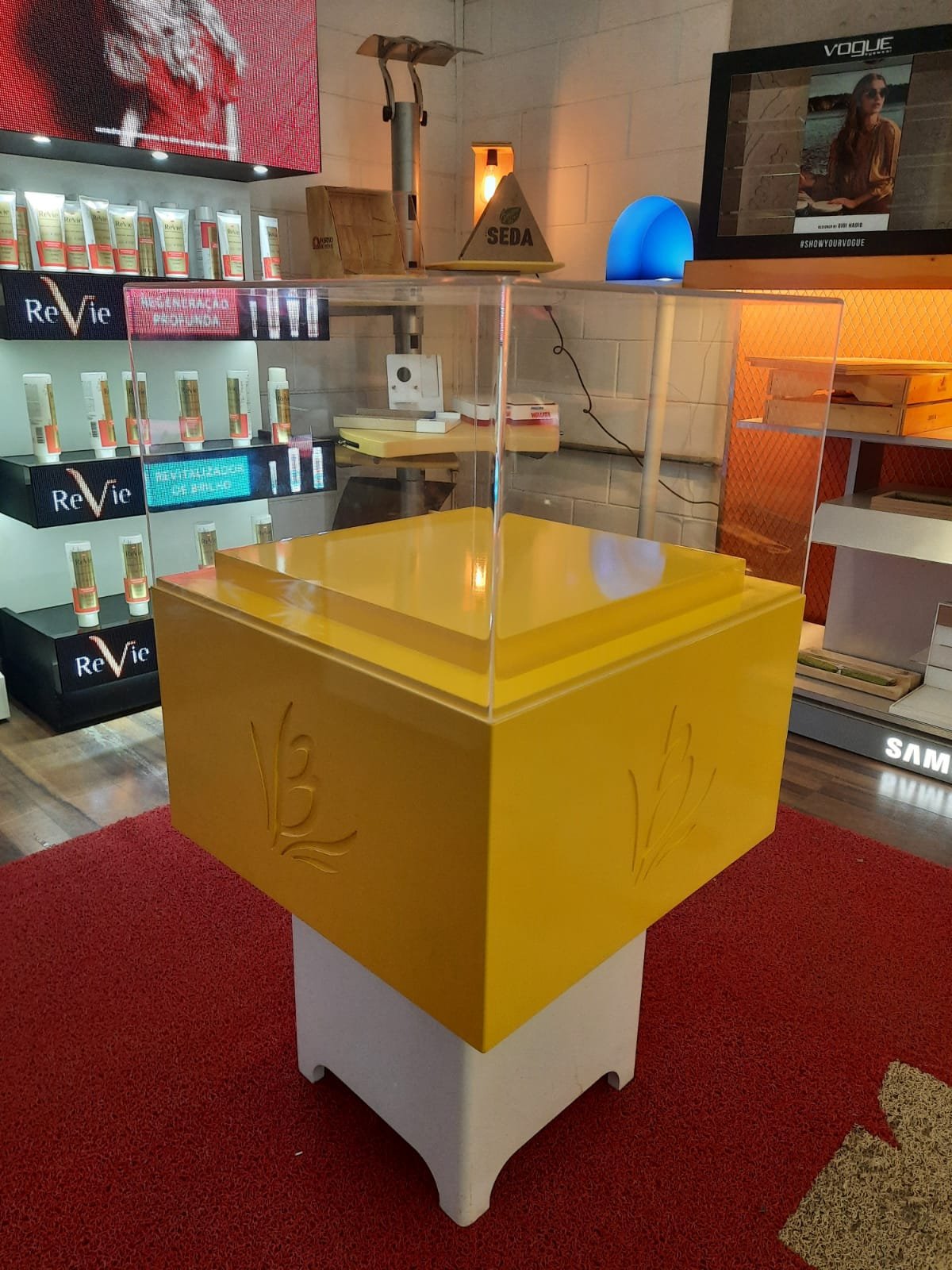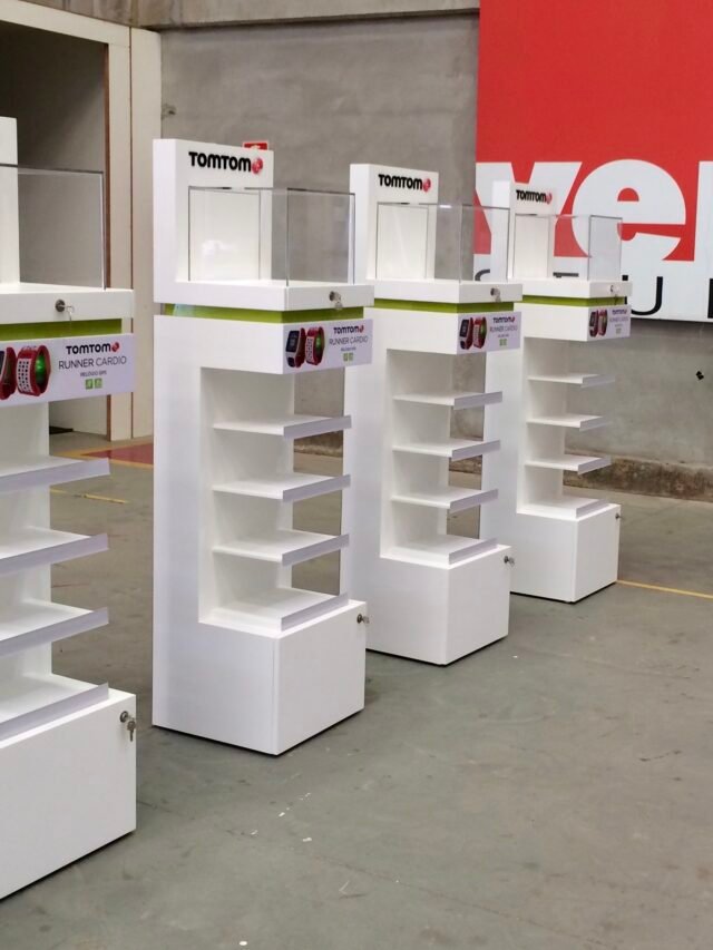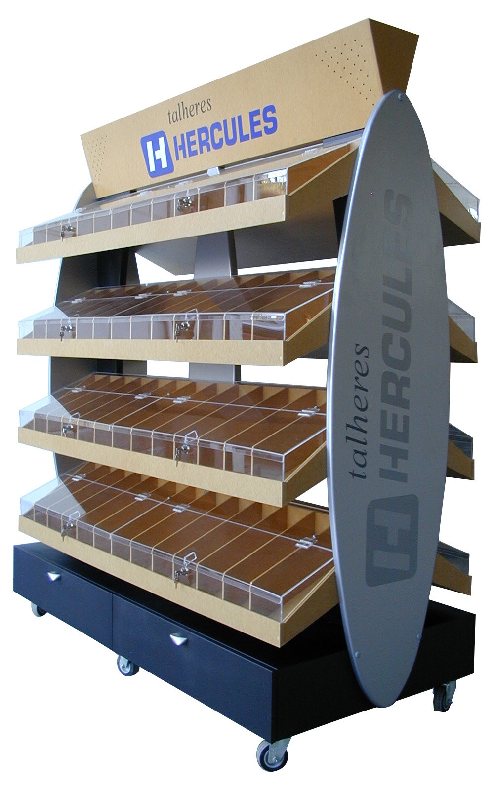 Os displays de chão do Studio Vero são ideais para exposição de produtos em áreas de grande circulação.